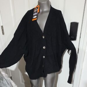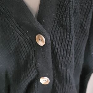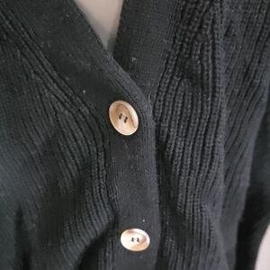 Chic black cardigan with button closure. Ideal for layering. Soft and cozy knit. NWT