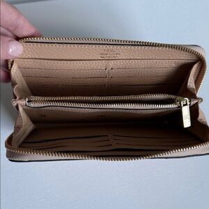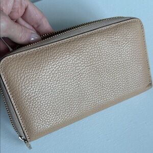 Elevated Nude/ zip-around wallet has refined gold-coloured details and all the style of Cuoieria. It can hold all the essentials you need for even the most important evenings, without sacrificing style. (12) card holders and two large envelopes for bills with center sip change purse.