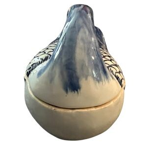 Perfect as a jewelry or ring holder, vanity trinket box, or decorative accent for blue-and-white collections.
