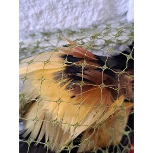 Vintage Pillbox Hat Green Pheasant Feather Multicolor Netting Retro Womens OS