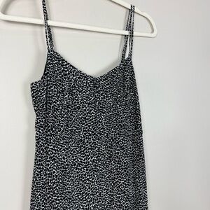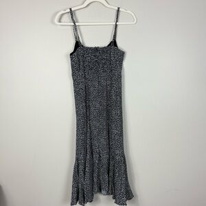 Anthropologie Tina Flounced Midi Dress Womens 10P Black White Animal Print