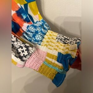 Brighten your wardrobe with this vibrant patchwork FATE top. Size small, fit is slightly flowy.