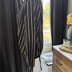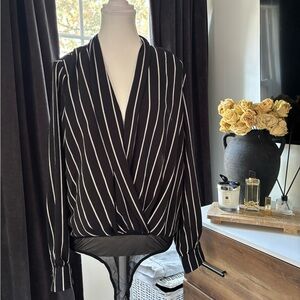 Chic blouse with black and white stripes. Wrap design with long sleeves. Ideal for stylish outings. Never worn !