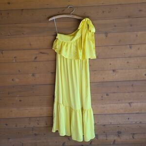 Asos Y.A.S Victoria OS Ankle Dress Lemon Yellow One Shoulder Bow S Bridesmaid