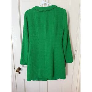 ZARA Green Textured Weave Boucle Tweed Dress with Crystal Buttons