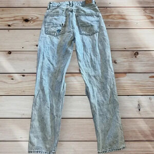Keywords: American Eagle, mom jeans, size 2, blue jeans, distressed, relaxed fit, light wash, women's jeans, casual wear, 100% cotton, button fly, 5-pocket design, pre-owned jeans, Bangladesh.