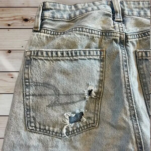 American Eagle Women's Size 2 Light Blue Distressed Mom Straight Jeans
