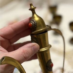 Vintage Brass Mini 8” Tea Set with Carafe and Cups