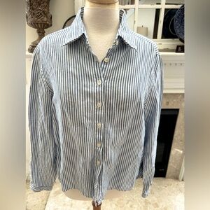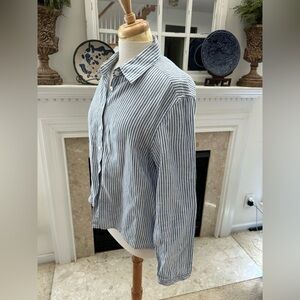 Stylish linen blue & white stripes. Button-down design. Ideal for casual wear. Quality made materials. Size 18. Excellent condition