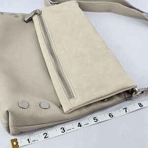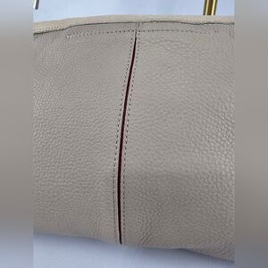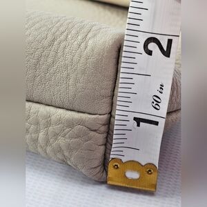 •Crafted with a neutral grey brown soft pebbled leather