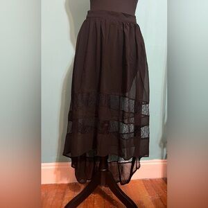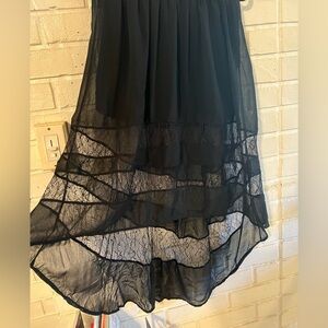 Black skirt. Shorter in the front than in the back, in good preowned condition.