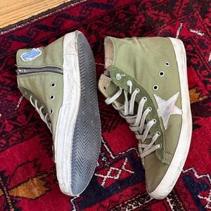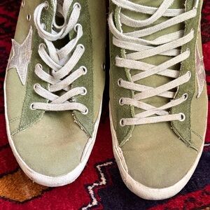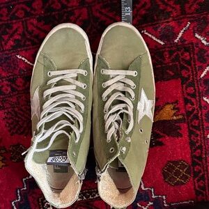 Golden Goose Green High-Top Sneakers with Silver Star Pre-Loved Condition