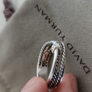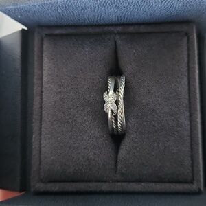 Authentic David Yurman X Crossover ring in sterling silver, featuring pavé-set diamonds for a subtle, elegant sparkle. This is one of Yurman’s most recognizable and timeless designs—perfect worn alone or stacked.