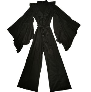 NWT Cien Black Metallic Ruffle Wide-Leg Jumpsuit Mesh Yoke Angel Sleeves Size L