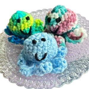 Set of crochet catnip cat toys. Includes three multicolored octopus . Perfect for playful cats.