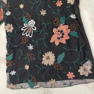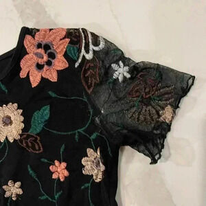 Como Vintage Sheer Black Floral Embroidered Top
