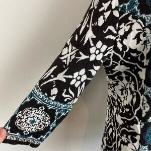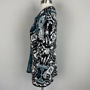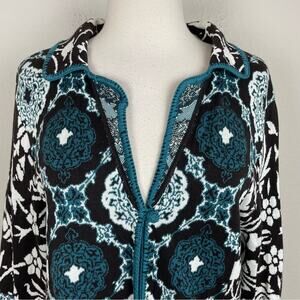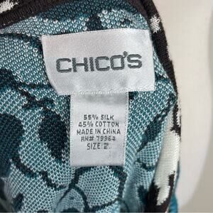 Chico's Green White Black Floral One Button Silk Cotton Cardigan 2