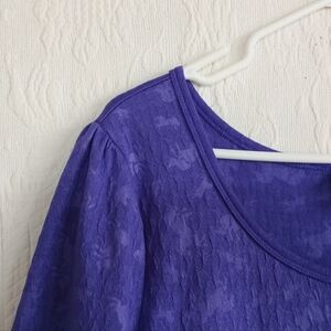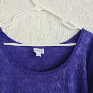 Chic fit n flate purple midi dress by LuLaRoe. Featuring a fun a colorful textured unicorn pattern and a flattering silhouette with short sleeves.