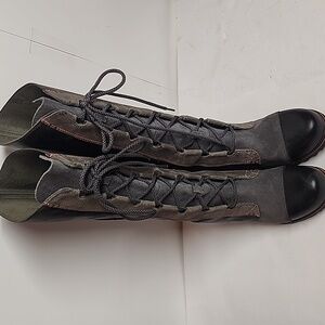 Sorel Cate The Great Sz8.5 Black Gray Olive Lace-up Tall 3.5 Hidden Wedge Boots