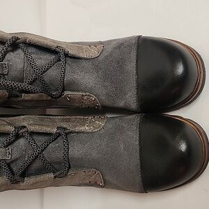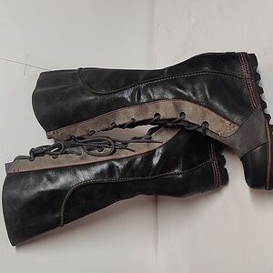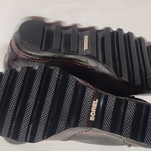 Elevate your style with these chic black gray olive with orange contrast stitching SOREL Cate the great size 8.5 women's 3.5" hidden wedge boots. Perfect for any occasion, these boots offer both comfort and elegance. Pre-owned in good condition. Retail $350 Get them before I change my mind and keep them. Purchased in Montana. Durable, quality, Stylish, amazing boots.