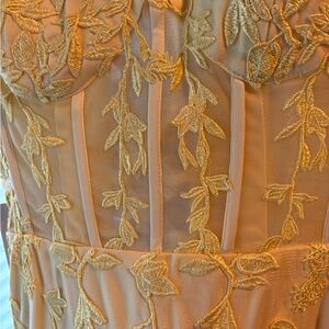 Embrace sophistication with this chic yellow floral prom dress. Perfect for making a memorable entrance, its exquisite floral detailing enhances its elegance.