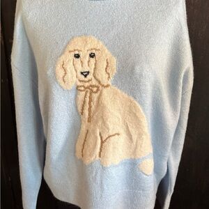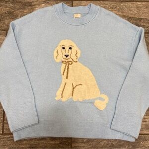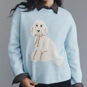 Anthropologie POODLE Maeve DOG ICON sweater light blue crew neck Pullover M NWT