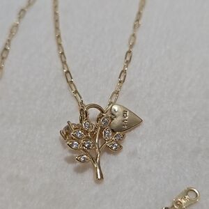 Gold Plated La Cn necklace featuring a tree and heart pendant with sparkling CZ accents.