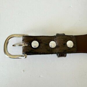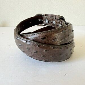 Rod Patrick Mens Full Quill Ostrich Leather Belt Dark Brown 1.25” Taper Sz 28