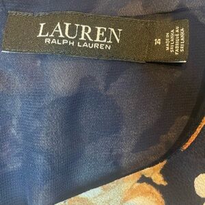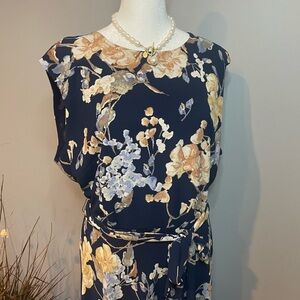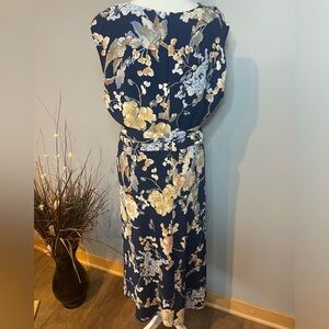 Lauren Ralph Lauren Women’s 14 Navy Floral Midi Dress Belted Sleeveless