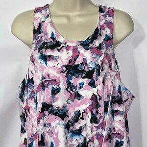 This is a brand new dress from LIVI. Livi is the active wear line from Lane Bryant. Size 18/20. Colors are purples, blues and white. Racerback. Built in shelf bra. Pockets. Nice soft fabric.