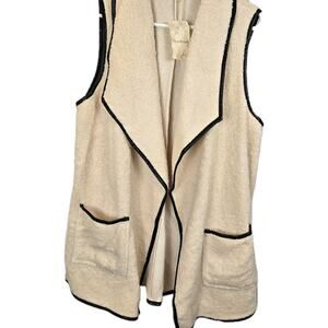 Hem & Thread Soft Sherpa Open Vest Ivory W Black Piping NWT Large LAGENLOOK BOHO