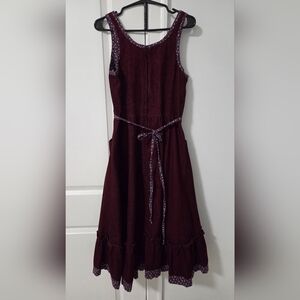 Gunne Sax Burgundy Midi Dress with Lace Trim