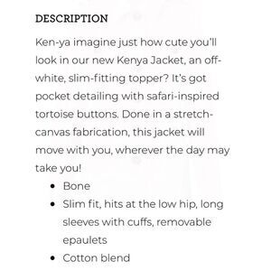 Cabi Kenya Cargo Cotton Jacket Collared Utility with Pockets 5659 Size Small