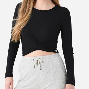 VUORI WOMEN'S LONG SLEEVE COVE TWIST TEE in Black