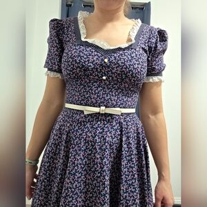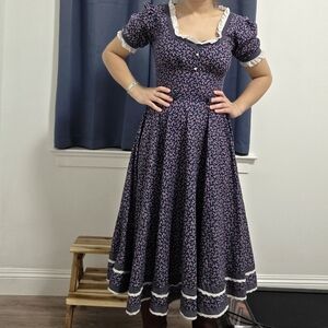 Gunne Sax Floral Navy Blue Dress