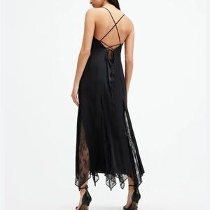 All Saints Jasmine Black Lace Maxi Slip Dress. Size 8