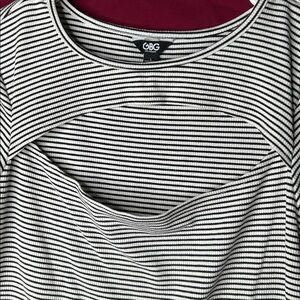 GBG Los Angeles Black and White Striped Short Sleeve Top