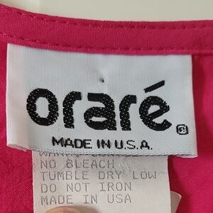 Vibrant vintage Orare top in hot pink, made in the USA. Features a flattering V-neck, short dolman sleeves. Lightweight and comfortable — perfect for adding a pop of color to any outfit.