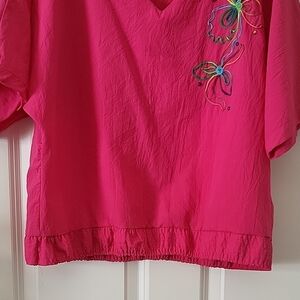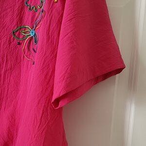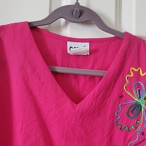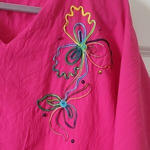 Orare Vintage Hot Pink V-Neck Top Embroidered Women Size M