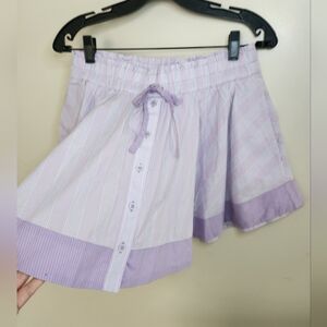 Women's Aerie Purple/Plaid Boxer Skort Sz Medium , Stretch Waist, W/Pockets