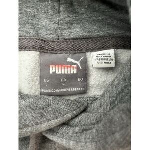 Puma Hoodie Men's Large Gray Fleece Logo Sweatshirt Kangaroo Pockets Pullover