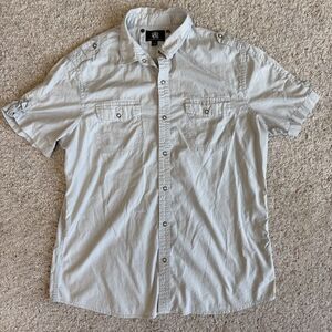 Rock & Republic Men's XL Button-Down Shirt Short Sleeve Gray 100% Cotton