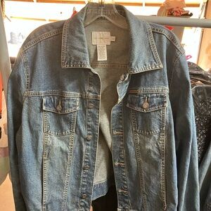 Stylish denim jacket by Calvin Klein. Features button closure and chest pockets.