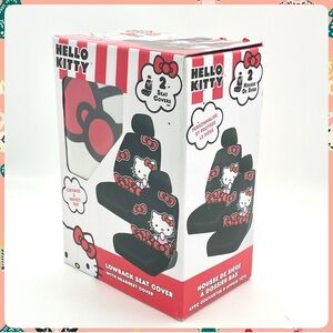 New in Box! Includes 2 Lowback Seat Covers w a cute Hello Kitty design and headrest covers. These seat covers are a great way to protect your vehicle seats from stains, spills and random crumbs while still showing your love for Hello Kitty! ❤️❤️❤️