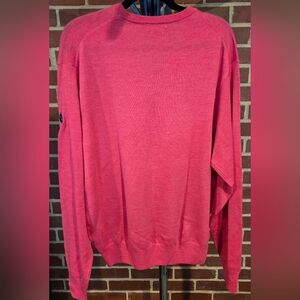 Stylish V-neck sweater by Peter Millar. Bright pink color. Perfect for any occasion. Nice color and condition.