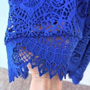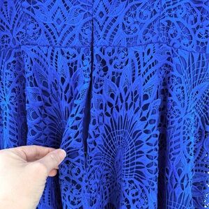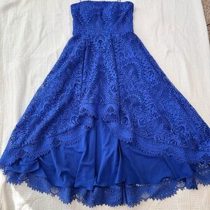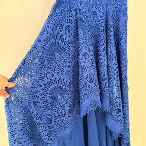 Nicole Miller Blue High Low Embroidered Lace Spaghetti Strap Dress Gown Sz 8
