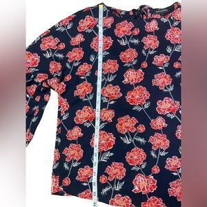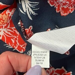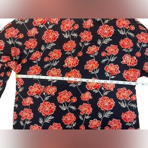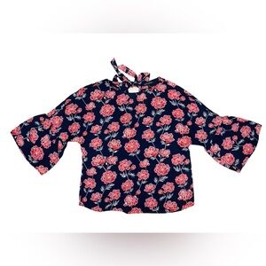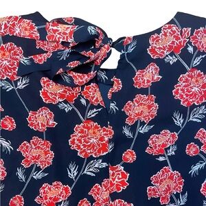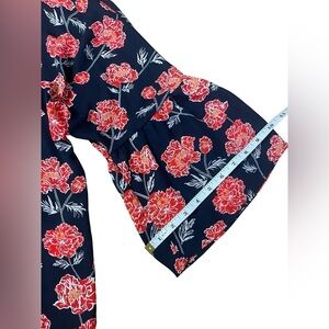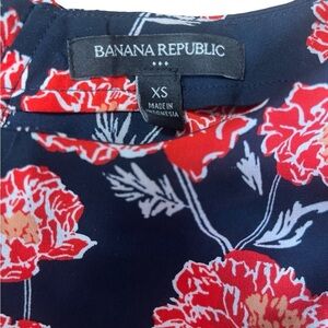 Banana Republic Floral Blouse Women XS Navy Red Romantic Bell Sleeve
