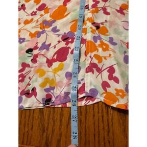 W5 Floral Print Blouse Tunic Top XL White Pink Orange Purple Short Sleeve