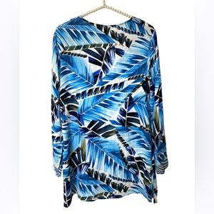 LA BLANCA Blue Tropical Print Swim Cover-Up La Blanca Two Cool V-Neck Tunic