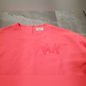 Maison Kitsuné Paris Coral Polyester Sweatshirt. Round collar. Neon Pink (highlighter). Embroidered logo at the front. 3/4 sleeves. Size 38 European = Size M; Oversized for a size medium (see pictures for measurements). 1/2ish sleeves. 100% Polyester. Fabric is lightweight and flowy. Excellent condition. No stain, no rip. Non smoking house.